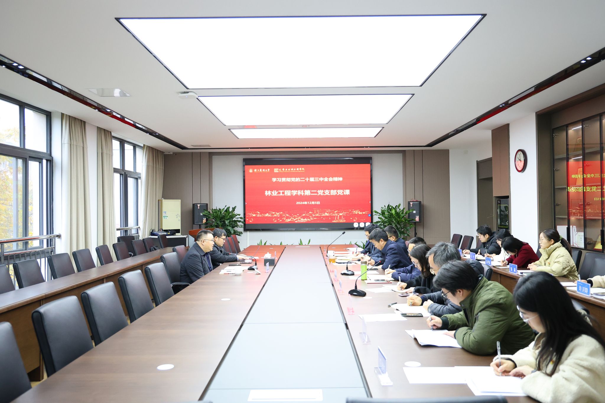 12月5日,校党委书记朱斌来院走访调研。校办秘书科主管徐寒建、院长孙庆丰、院党委书记潘国忠、学术副院长沈晓萍、林业工程学科第二党支部全体党员参加。